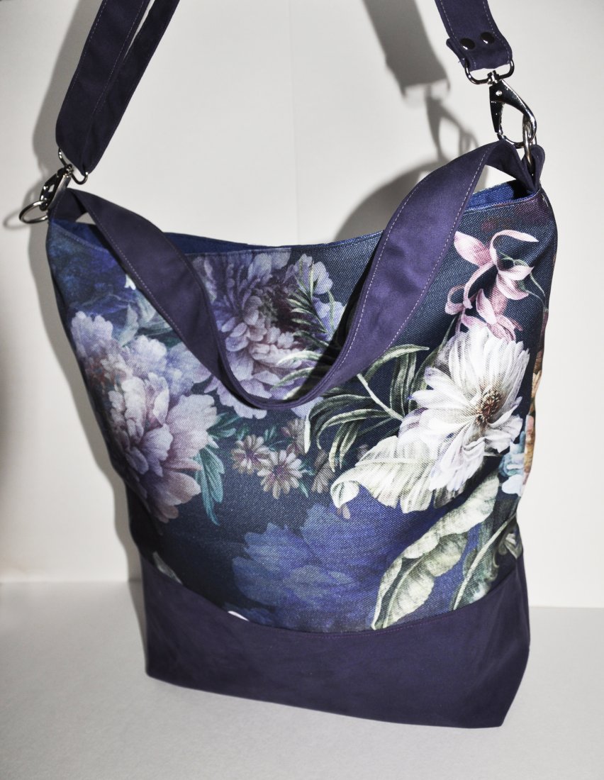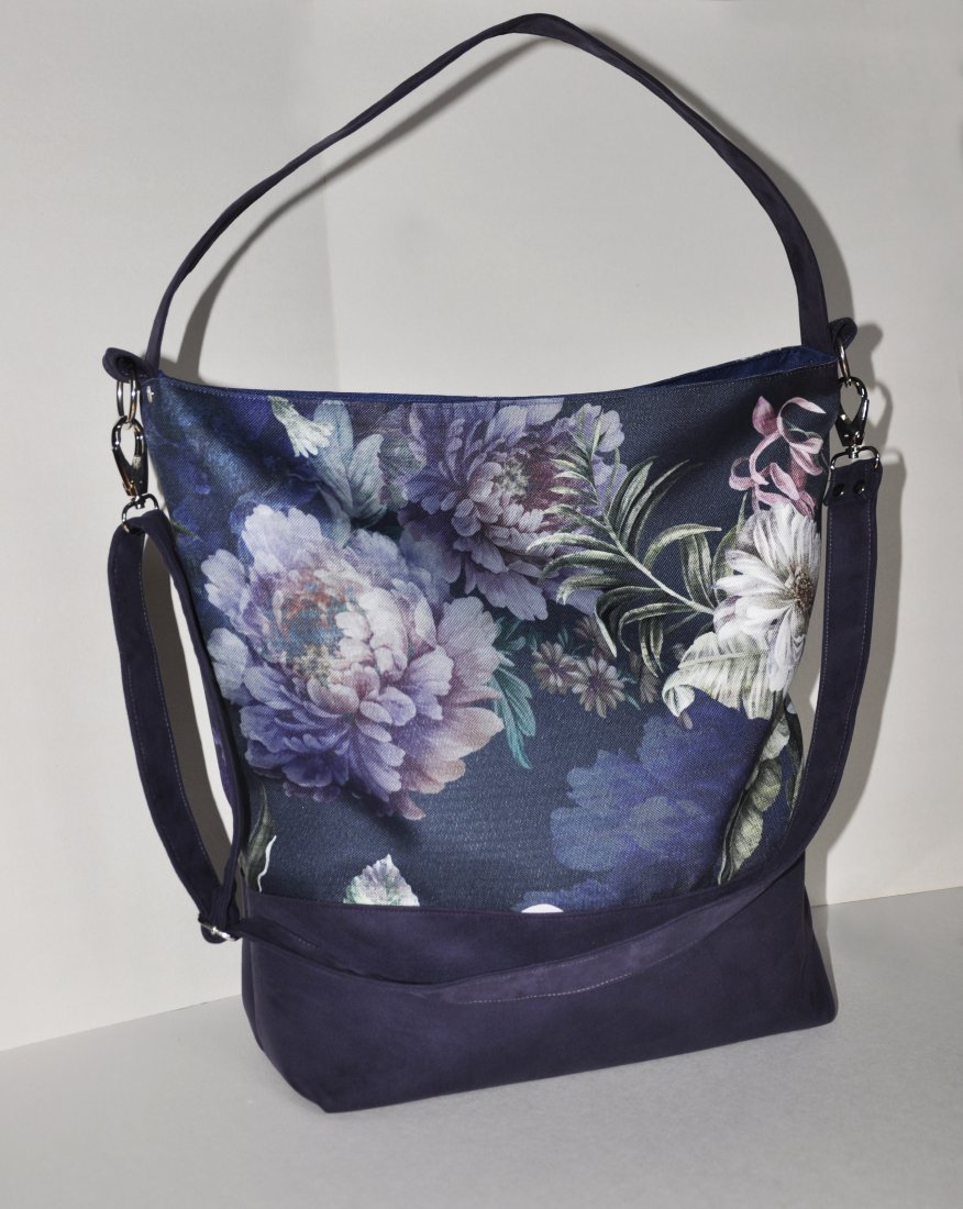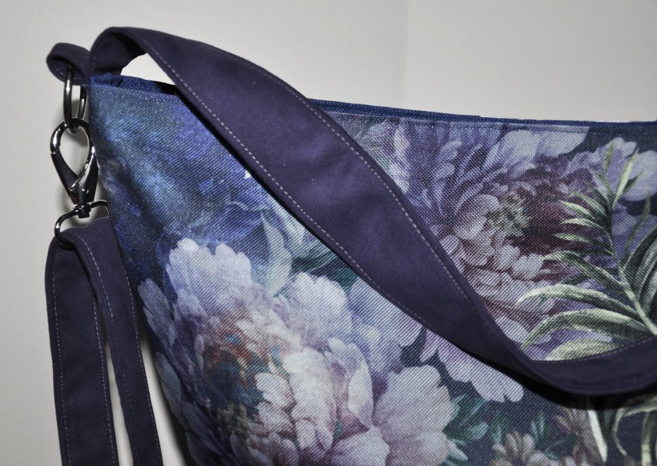 wykonana z drukowanej, wodoodpornej tkaniny w połączeniu z solidną tkaniną obiciową w kolorze granatu