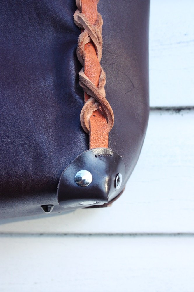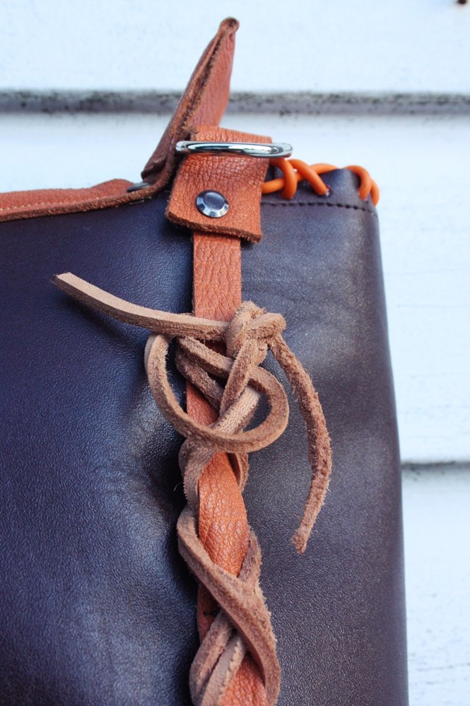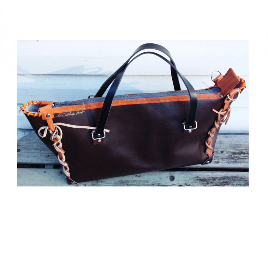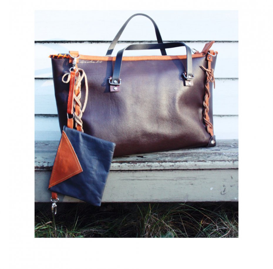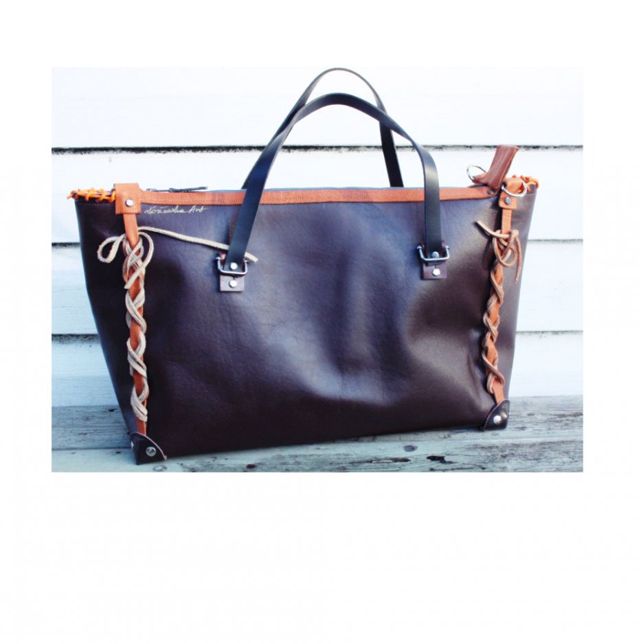 Duża, pakowna, unikatowa torba (rękodzieło) wykonana ze skóry naturalnej.