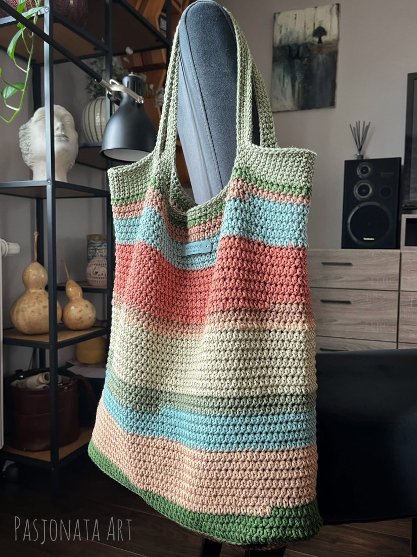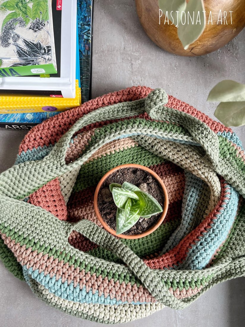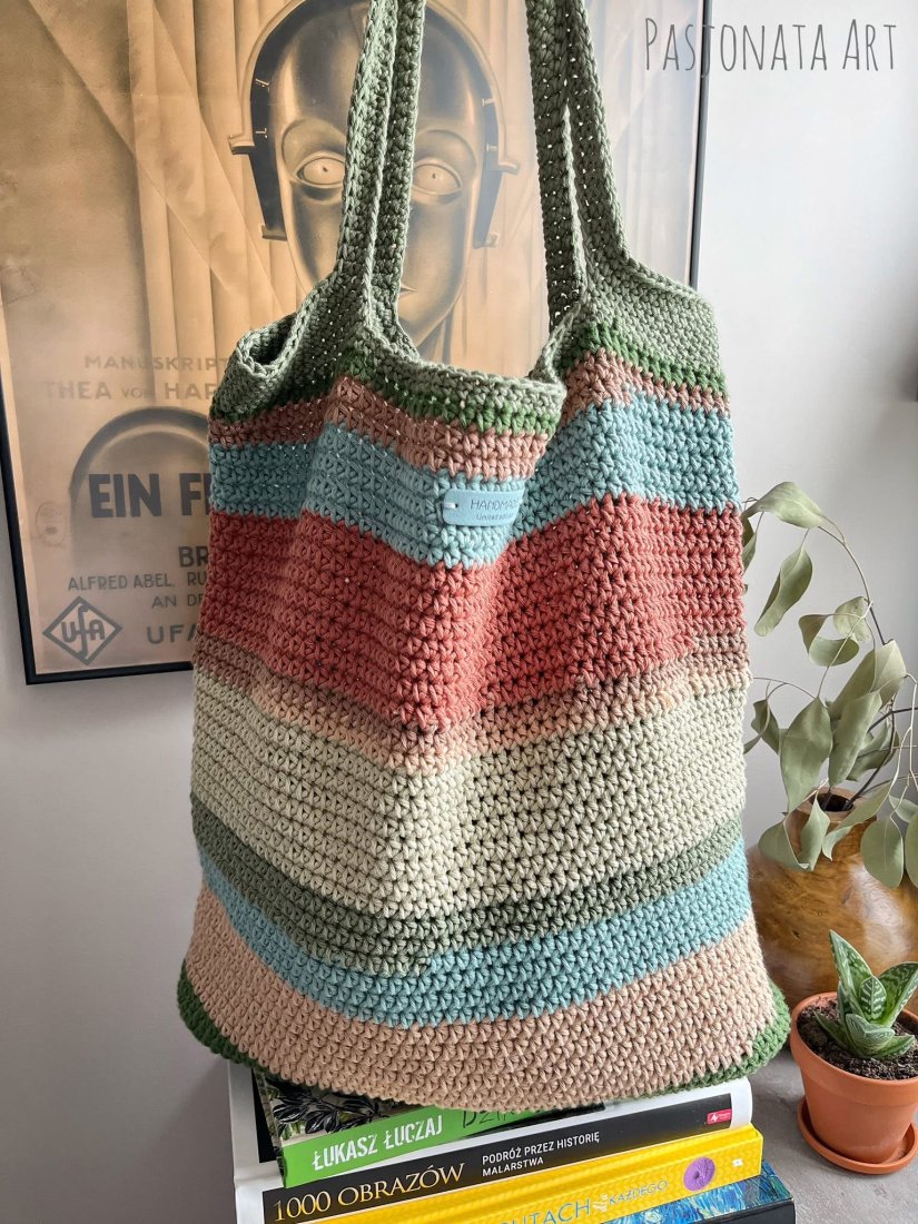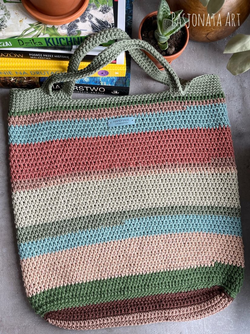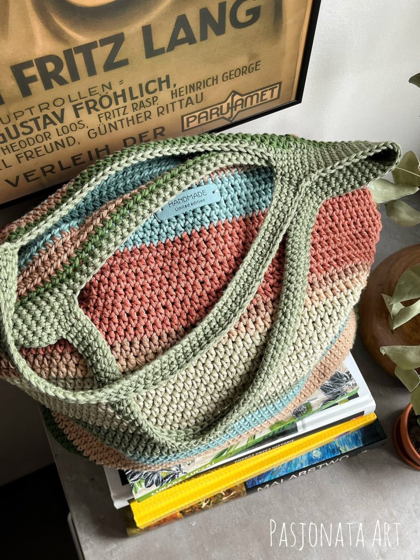 Torba/siatka/torebka w kolorach retro. Pojemna, duża, mieści duże zakupy ????. Idealna na codzienne wyjścia do sklepu, na plażę, spacer itp. Bez problemu można ją spakować w walizkę i podbijać świat ????Wykonana ze 100% bawełny (Drops Paris). Połączenie kolorów to moja fantazja. Marzyło mi się zrobić torbę prostą taką ART jak nosiło się kiedyś.