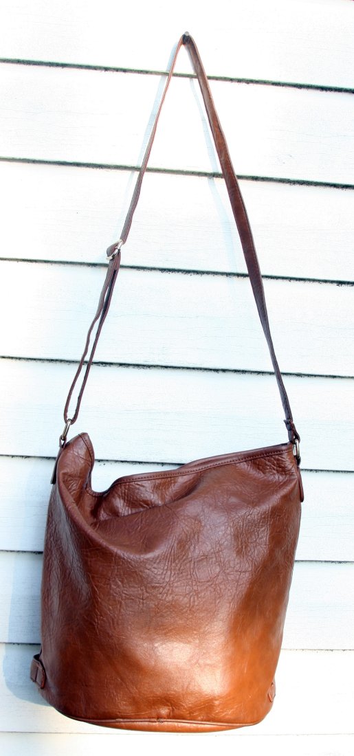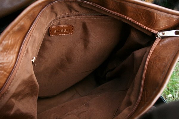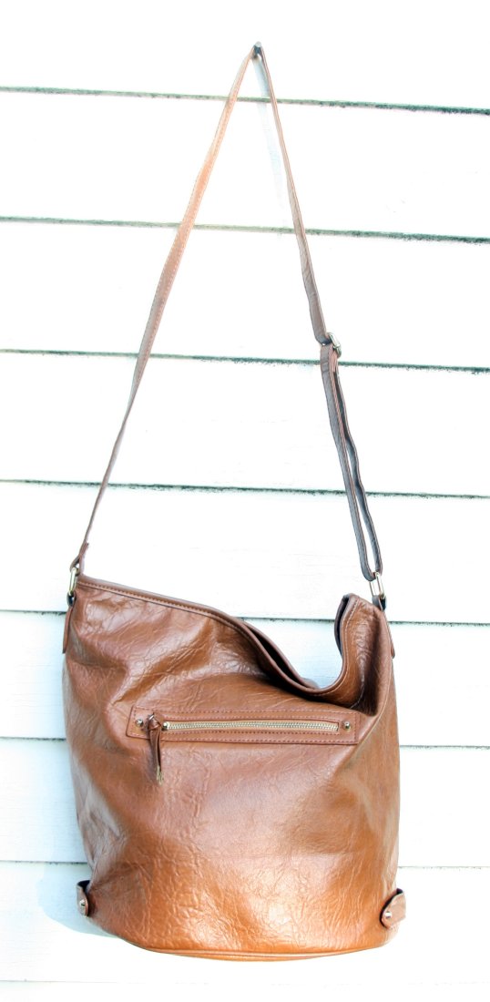 Brązowa torebka worek firmy sinsay, z eko skóry, pasek regulowany,w srodku kieszonka na zamek i dwie mniejsze bez