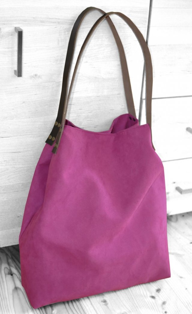 Duża torba w kształcie worka wykonana z alcantary (syntetycznego zamszu) w kolorze fuksji,