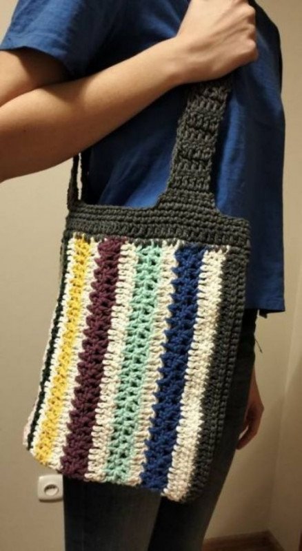 Torba wykonana na szydełku włóczka bawełniana wieloklorowa