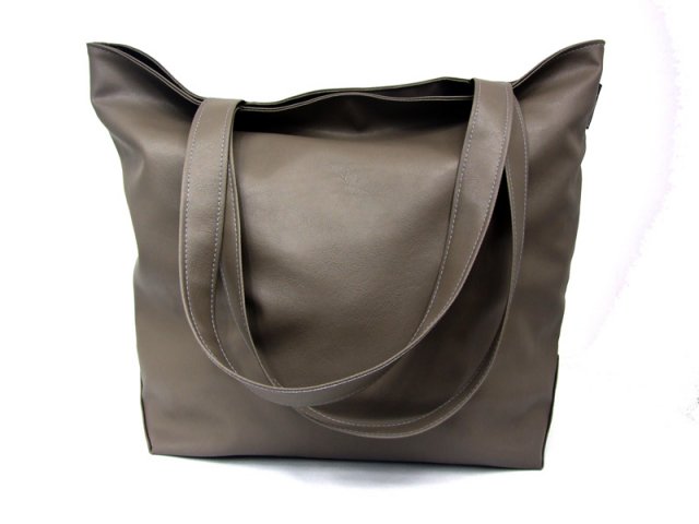 Bardzo pojemna torebka wykonana z szarej skóry ekologicznej, zapinana na magnes. W środku podszewka z szaro-grafitowej bawełny, dwie kieszonki na drobiazgi. Długie rączki, umożliwiają bez ściągania jej z ramienia, wyciągnąć potrzebną rzecz. Wymiary: 47cm x 35 cm x 15 cm.