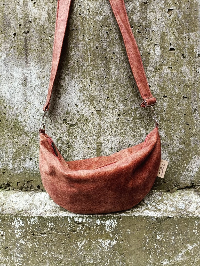 Tagi: #brązowa torebka, #nerka przez ramię, #torba z alkantary, #zamszowa torba