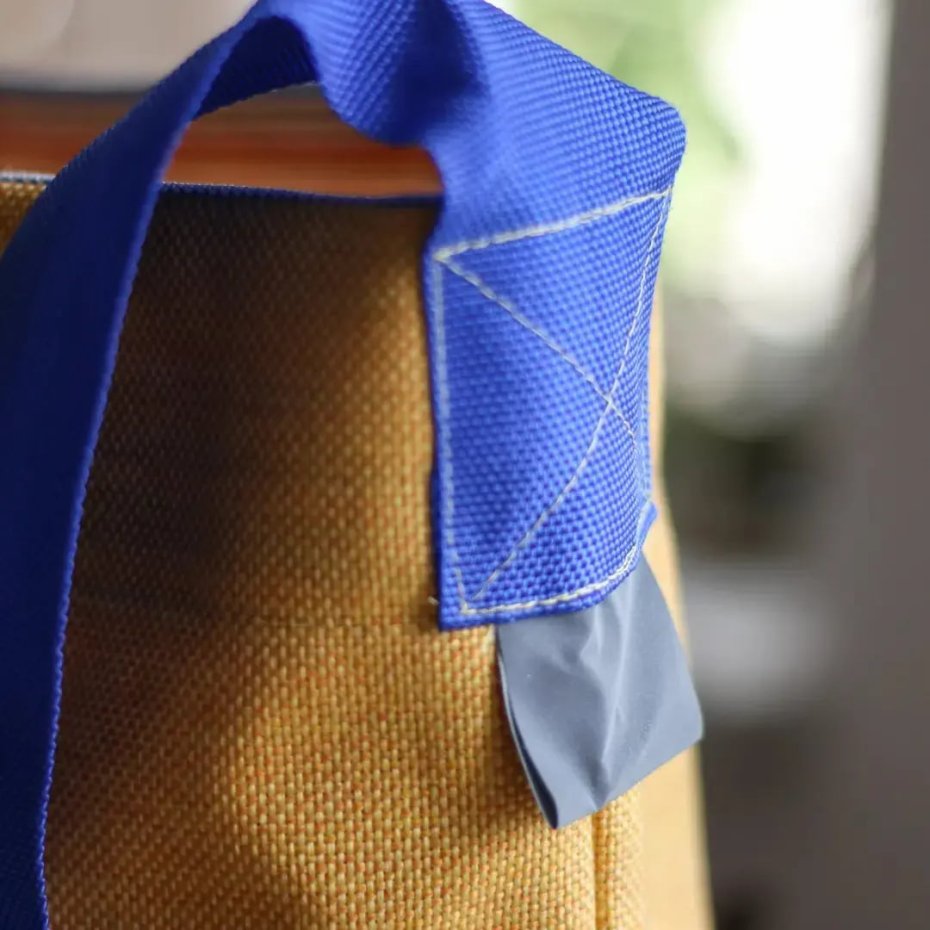 Torba z materiału obiciowego. Solidna, wytrzymała na spore ciężary, wewnętrzna kieszeń, wymiary 42x42, wszyte taśmy odblaskowe.