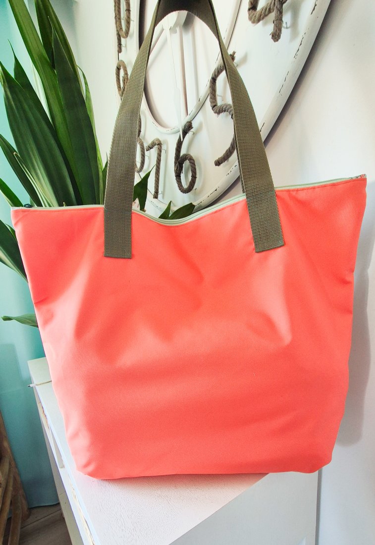 Ręcznie wykonana z wytrzymałego materiału wodoodpornego zapinana na zamek. Wielkość torby 47/47 cm
