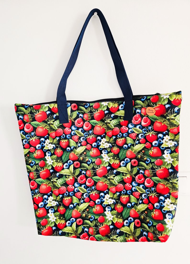 Ręcznie wykonana z wytrzymałego materiału wodoodpornego zapinana na zamek. Wielkość torby 47/47 cm