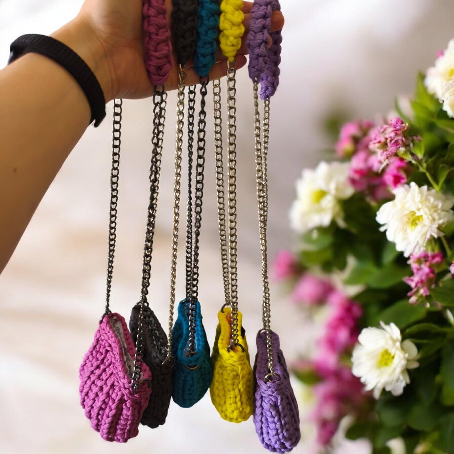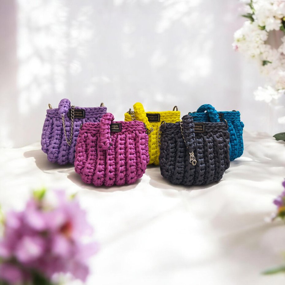 Oferuję ręcznie wykonaną torebkę ze sznurka poliestrowego – idealną jako stylowy dodatek lub drobny prezent