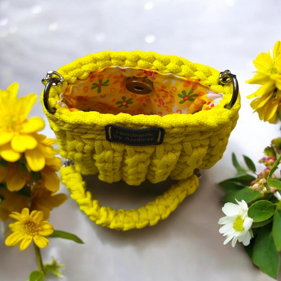 Oferuję ręcznie wykonaną torebkę ze sznurka poliestrowego – idealną jako stylowy dodatek lub drobny prezent