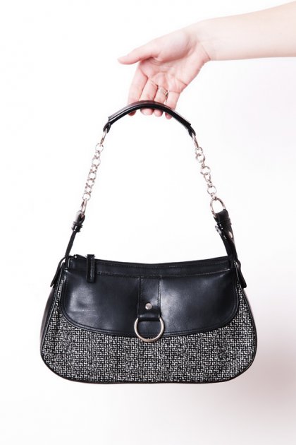 Nieduża torebka do ręki, w kolorze czarnym. Zapinana na zamek błyskawiczny. Wymiary to ok.: 28,5cm (w najszerszym miejscu)x16cmx5cm. Stan: bardzo dobry+!