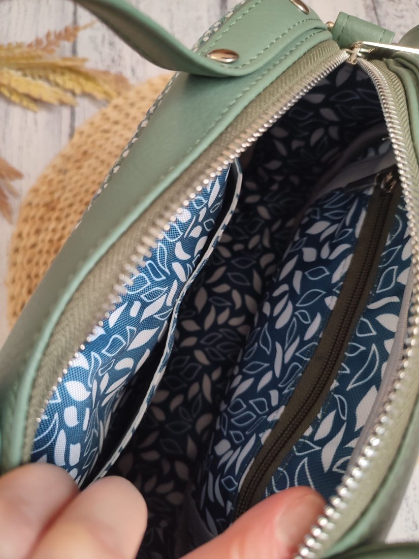 Kieszonki: 4 – kieszonka na zamek na tylenj ścianie, kieszonka na zamek wewnątrz,dwie kieszonki wsuwane wewnątrz.