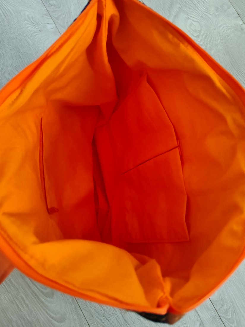 Kieszeń zewnętrzna na suwak, dwie kieszonki otwarte wewnątrz oraz mała kieszonka na suwak.