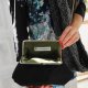 Mała, elegancka torebka zapinana na metalowe, srebrne zapięcie. Wykonana z czarnej tkaniny. W środku podszewka . Podszewka może sie różnic kolorem od prezentowanej na zdjęciu. Rączka to łańcuszek do zakładania przez głowę. Torebka jest usztywniana i