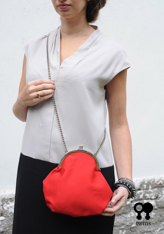 środku czerwona podszewka. Rączka to łańcuszek do zakładania