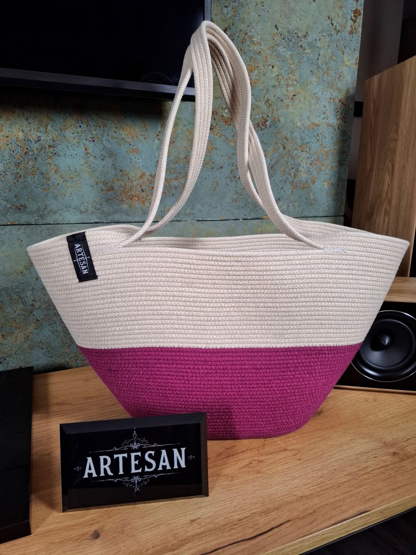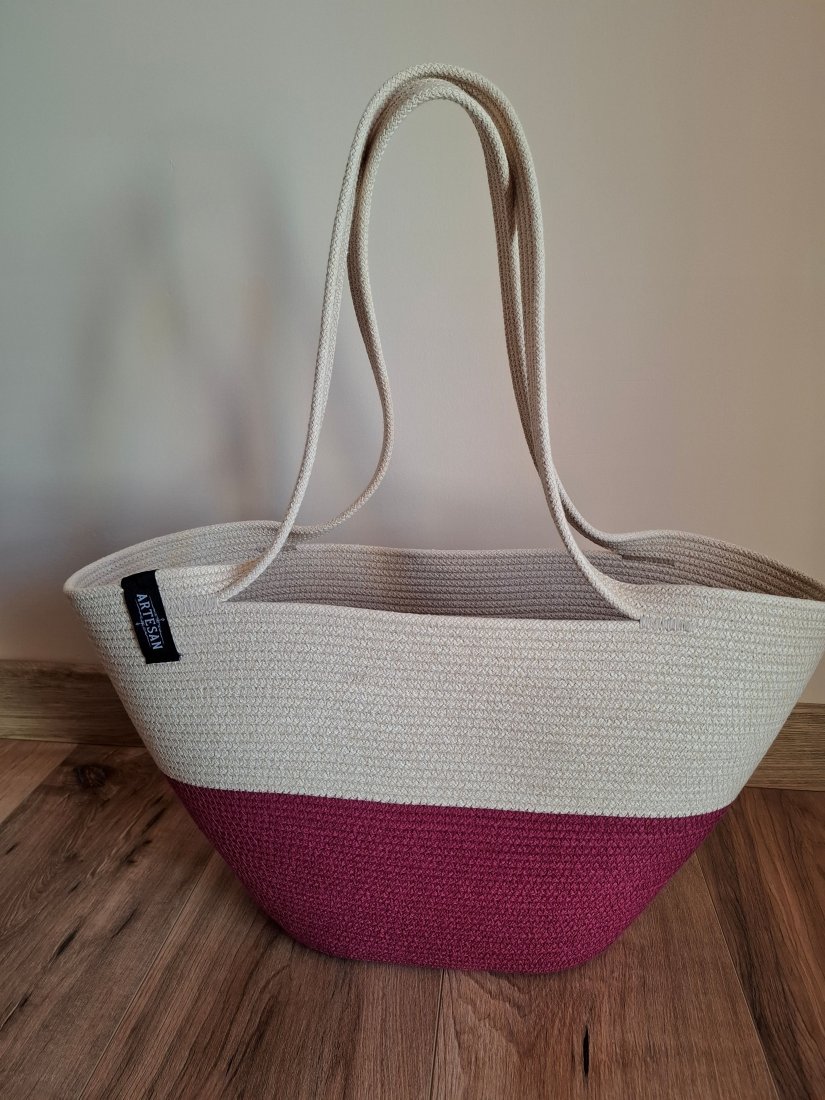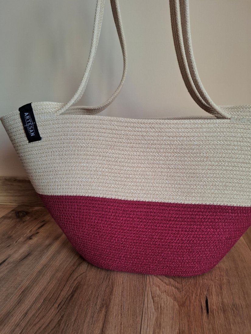 Torebka damska wykonana ze sznurka bawełnianego w kolorach śmietanka i biskupi nadaje jej przyjemny i naturalny wygląd, torebka ma prosty ale stylowy design, doskonała na zakupy lub na co dzień. Idealnie sprawdzi się w casualowych stylizacjach.