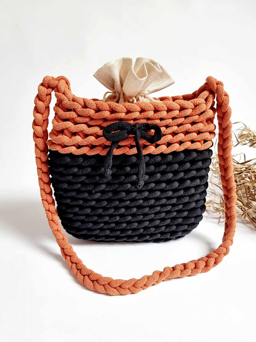 minimalistyczna czarna sukienka – niech sznurkowa struktura i kolor dyni przyciągną uwagę