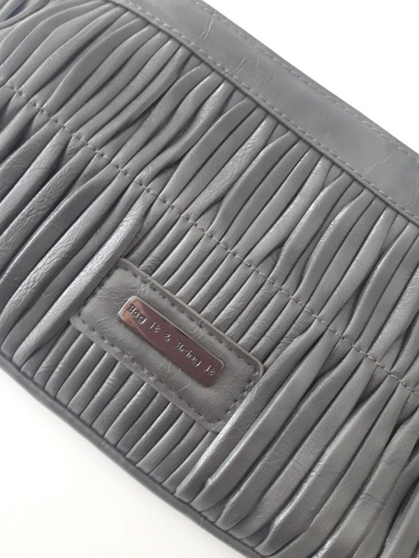Torebka do ręki szara na krótkim odpinanym pasku. Marszczony, przeplatany przód.