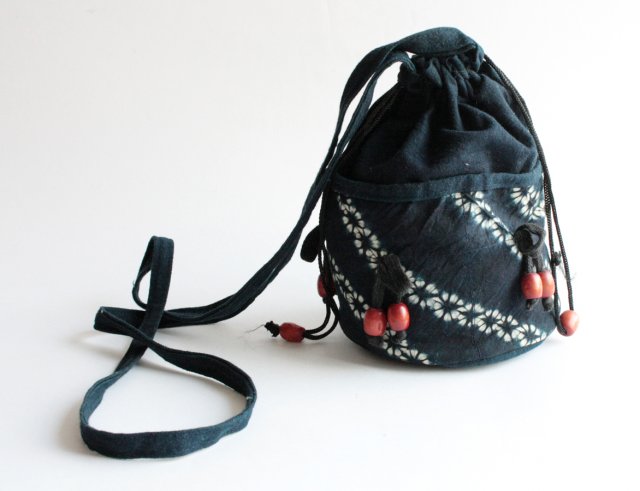 Niewielka, efektowna torebka w etnicznym stylu. Ściągana na górze dwoma troczkami. Materiał to prawdopodobnie bawełna. Torebka posiada podszewkę.