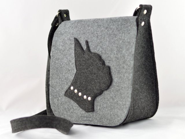Torebka została wykonana z grubego, mocnego, impregnowanego filcu. Torebka jest naprawdę bardzo urocza! Szerokość torebki - około 22 cm, wysokość około 23 cm, głębokość max 11cm. Torebka mieści format A5. Została wykonana z dbałością o każdy szczegół - klapa zapinana na magnes, w środku 2 przegrody - jedna z nich na suwak. Pasek do przewieszenia torebki przez ramię o długości około 145cm posiada regulator długości. Pasek został od lewej strony podszyty tasiemką satynową, co sprawiło, że jest bardzo mocny. Gorąco polecam!