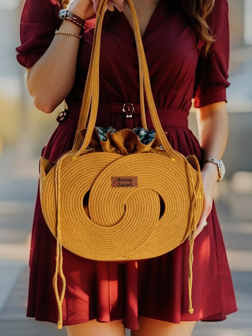 Idziesz ulicą. Na ramieniu musztardowa torebka – Pierścienie — oryginalna torebka ze sznurka, która od razu przyciąga spojrzenia. Czujesz, jak delikatnie kołysze się przy każdym kroku, a Ty… wiesz, że to dokładnie ten detal, który dodaje Ci pewności siebie.