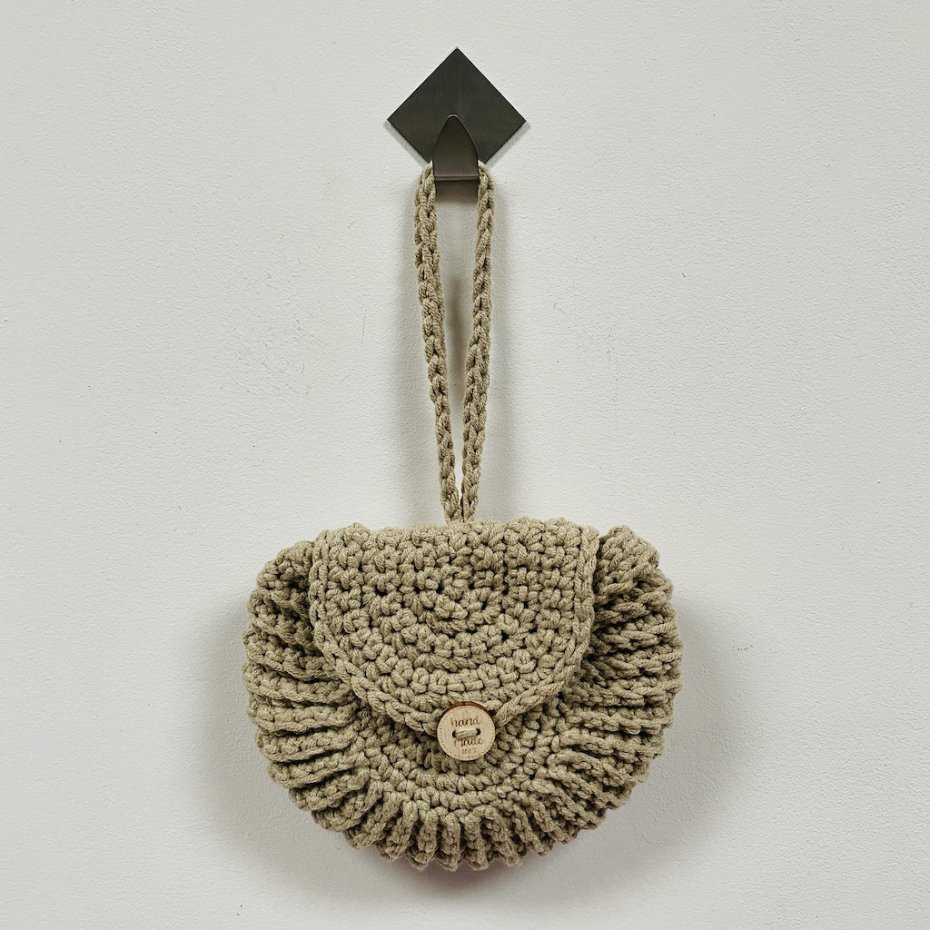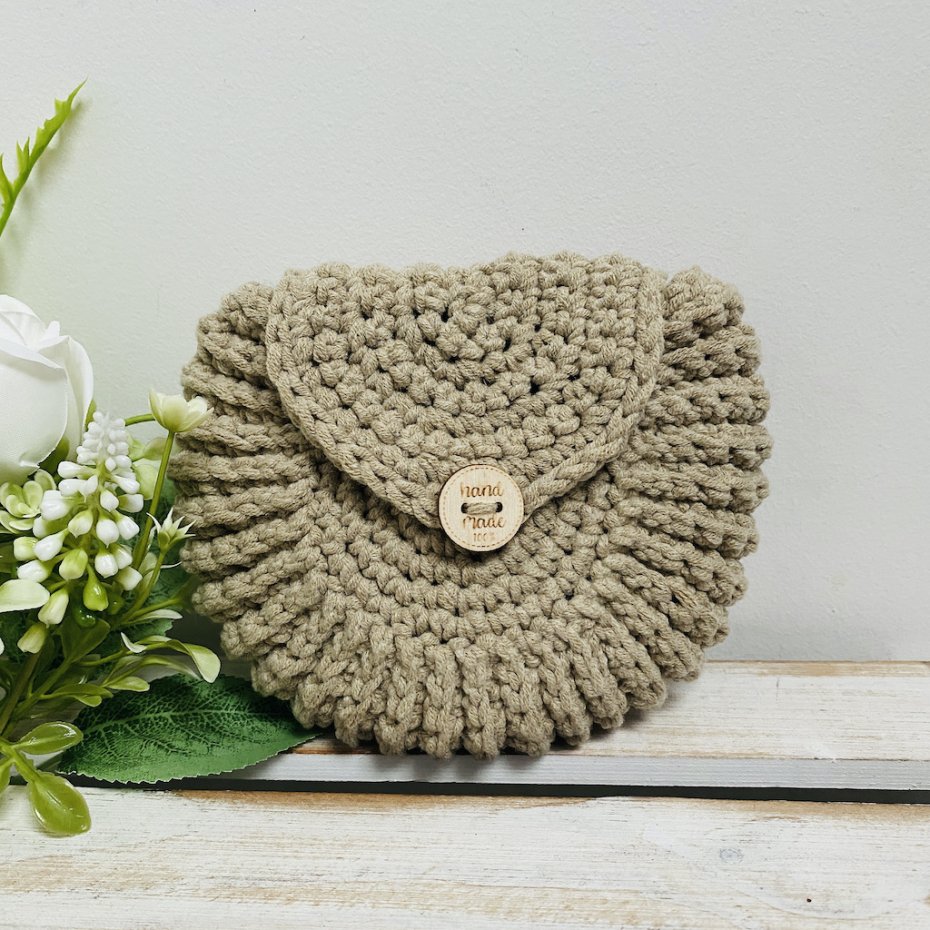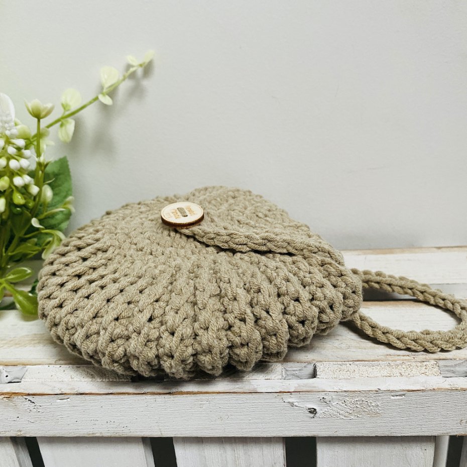 Torebkę wykonałam na szydełku z przyjemnej w dotyku mieszanki włóczki bawełniano–akrylowej.