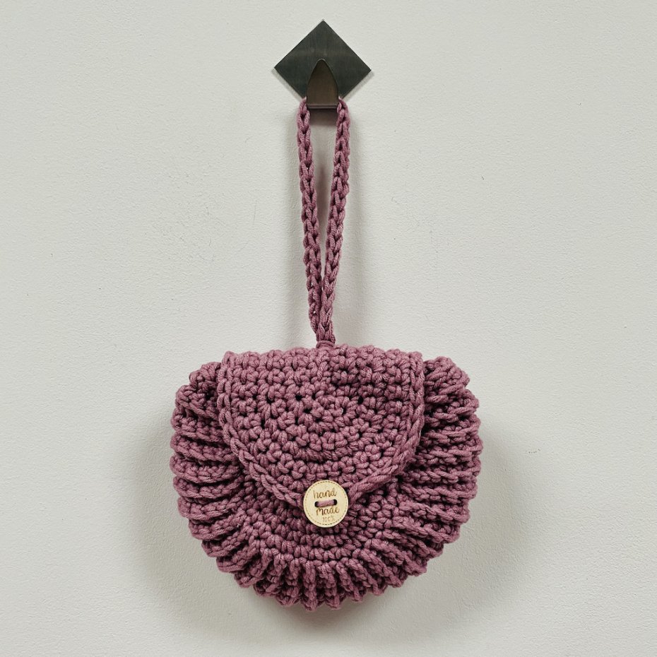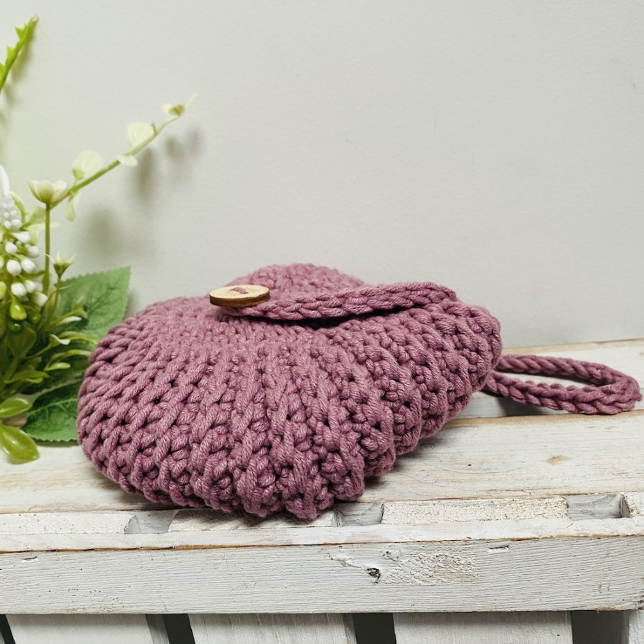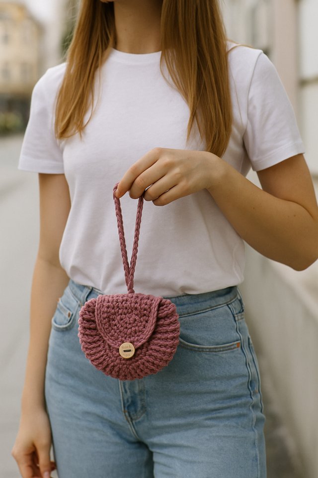 Torebkę wykonałam na szydełku z przyjemnej w dotyku mieszanki włóczki bawełniano–akrylowej.