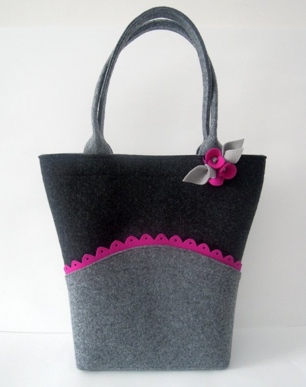 Torebka została wykonana z grubego, mocnego filcu. Prosta forma, ciekawie zdobiona motywem folkowym.
