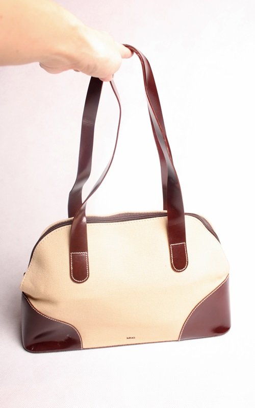 Elegancka torebka Mango,nowa ,nieuzywana,materiał ecru i wstawki ze skóry ekologicznej w kolorze brązowym