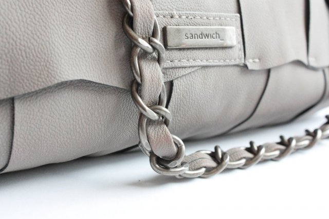 Efektowna, szara torebka, którą można nosić na kilka sposobów - jako kopertówkę lub torebkę noszoną na pasku. Materiał to prawdopodobnie ekoskóra. Torebka posiada podszewkę. Uchwyt jest odpinany.
