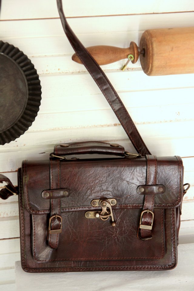 Oryginalna torebka - teczka vintage w kolorze brązowym. Torebka posiada rączkę i pasek. Wykonana z naturalnej bardzo dobrej jakościowo skóry!