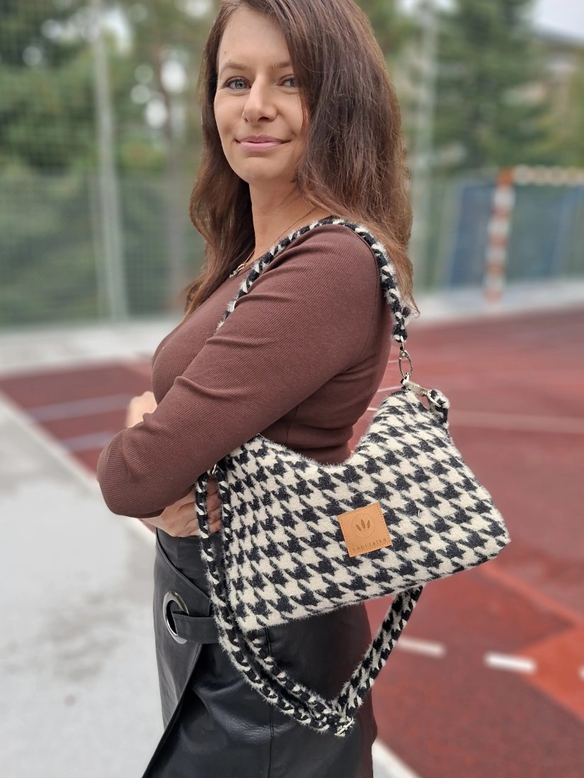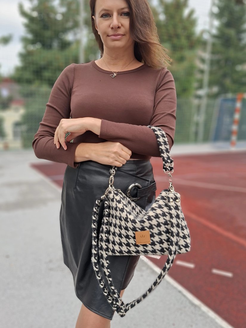 Tagi: #elegancka torebka, #mała torebka damska, #torebka w pepitkę, #torebka worek