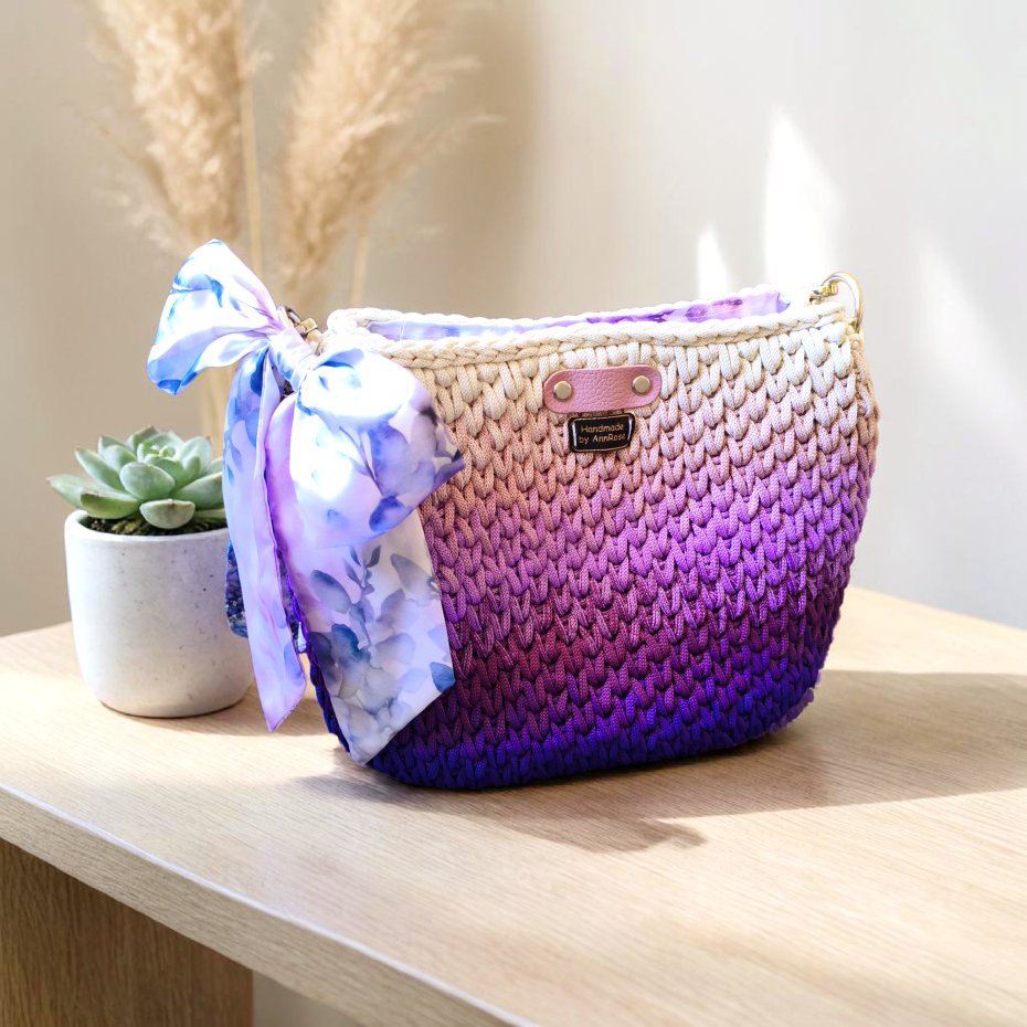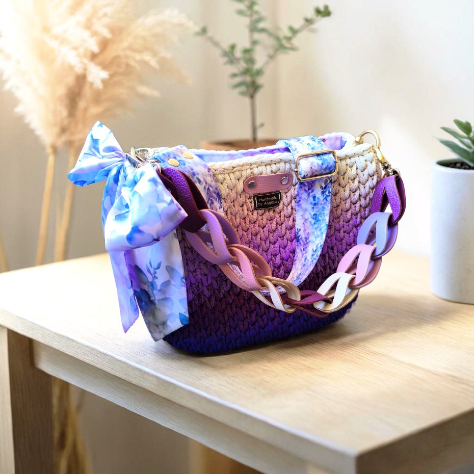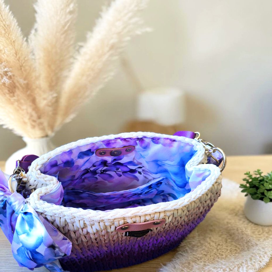 Piękna duża torebka w kolorach fioletu i kremu
