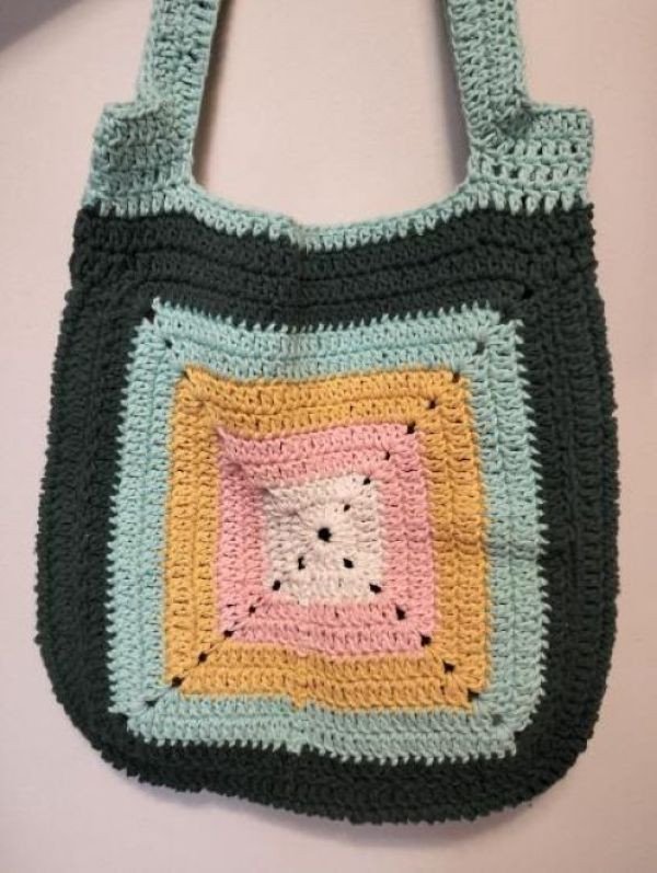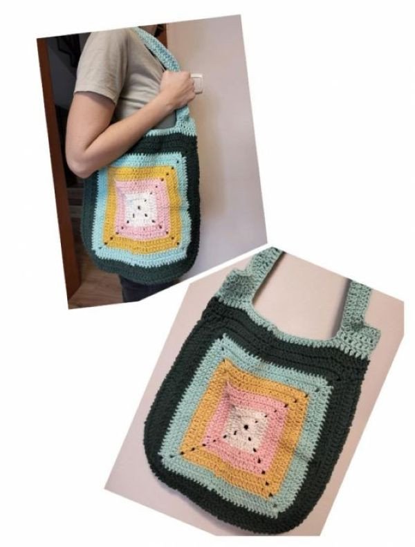 Wyjątkowa torebka - worek na ramię. Wykonana ręcznie na szydełku z włóczki bawełnianej - wielokolorowa. Idealna na zakupy spacery letnie wyjścia. Pomieści wszystko czego potrzebujesz, a przy tym wygląda zjawiskowo. Sznurek bawełniany 2mm w pełni naturalny