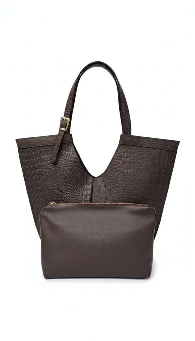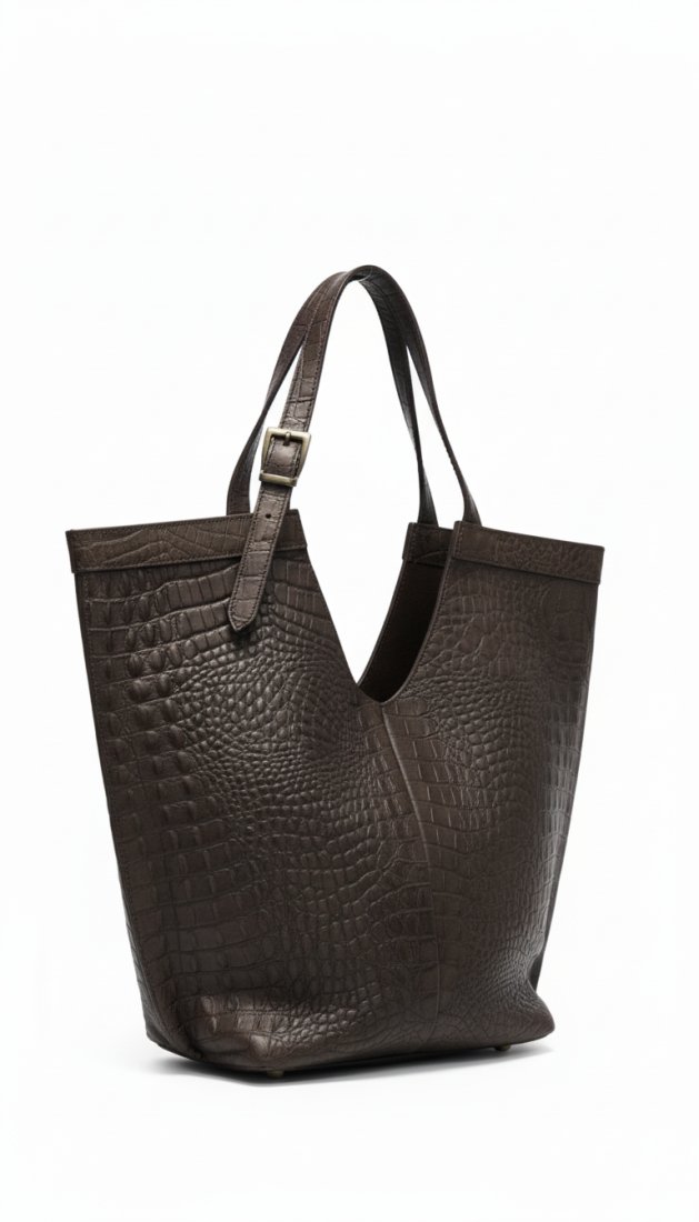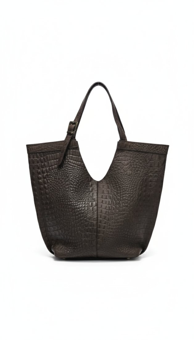 Shopper Bag V-Cut – Elegancja i Przestronność w Skórze Tłoczonej Krokodyla