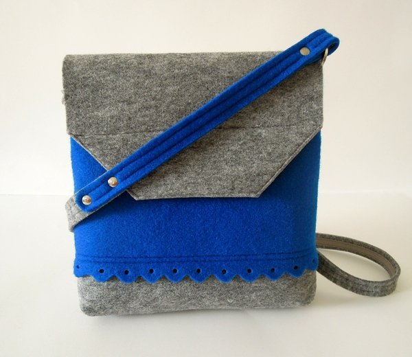 Torebka została wykonana z grubego, mocnego, impregnowanego filcu. Prosta forma, ciekawie zdobiona motywem inspirowanym folkiem. Bardzo urocza! Długość torebki - około 23 cm, wysokość około 23 cm. Została wykonana z dbałością o każdy szczegół - zapięcie na magnes, w środku 2 inne kieszonki - na telefon i inne drobiazgi. Pasek wykonany jest z dwóch kolorów filcu - wygląda bardzo ciekawie. Pasek został wzmocniony taśmą satynową, posiada regulator długości.