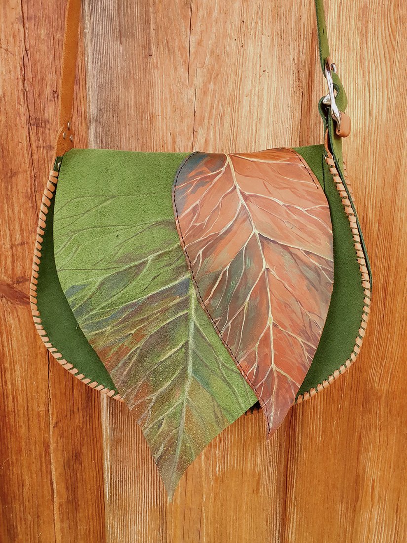 liście malowane farbami do skóry /niezmywalnymi/.
