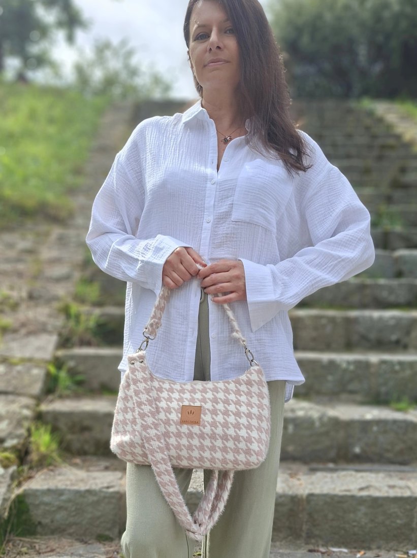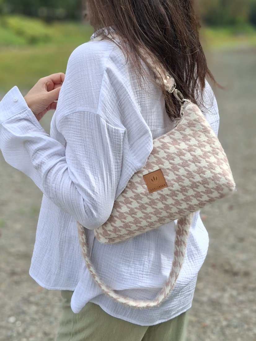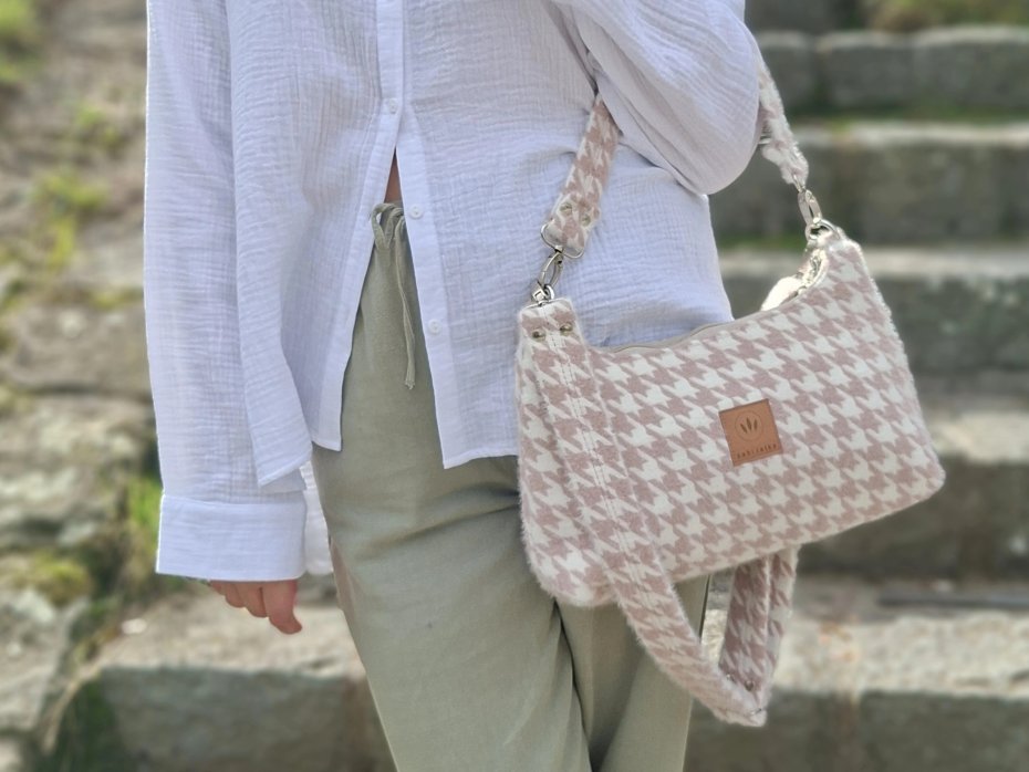 Lekka i wygodna torebka bagietka jest wzmocniona ale nie jest sztywna.