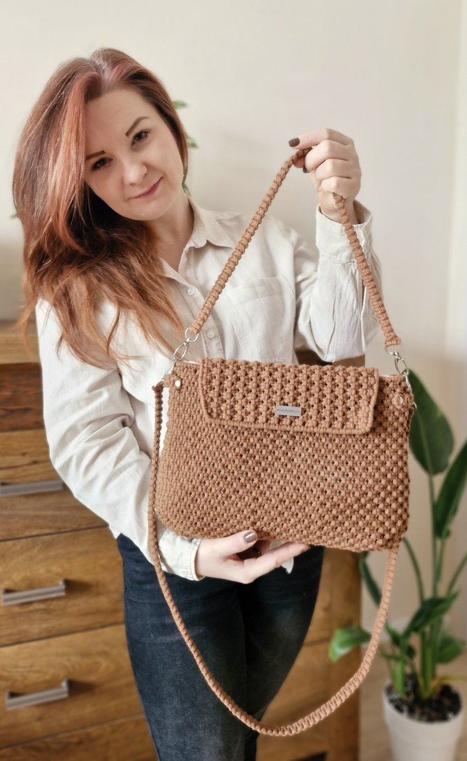 Torebka pochodzi z najnowszej kolekcji wiosennej SoLOW. Przy jej projektowaniu ważne było dla mnie aby wpisywała się w aktualne trendy niewysokich modeli zachowując jednocześnie ten wyjątkowy klimat produktu wykonywanego ręcznie – w stylu slow. Dlatego nie znajdziesz w niej żadnych poliestrowych elementów, w całości wykonałam ją z naturalnych materiałów.