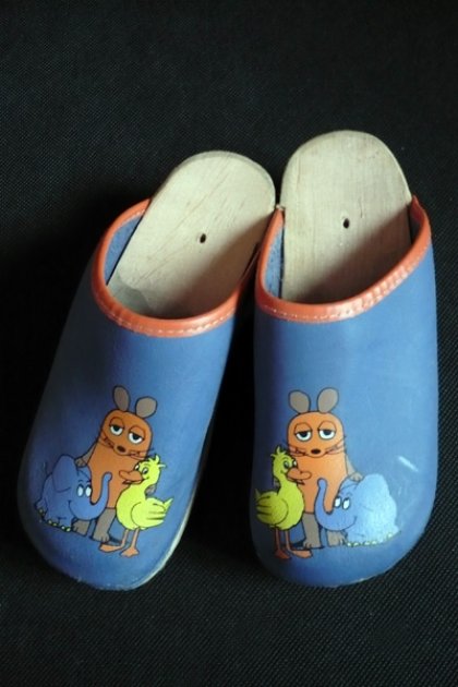 Oryginalne szwedzkie drewniaczki dla dziecka. Wykonane z naturalnej - malowanej skóry i drewna. Podeszwa gumowana.