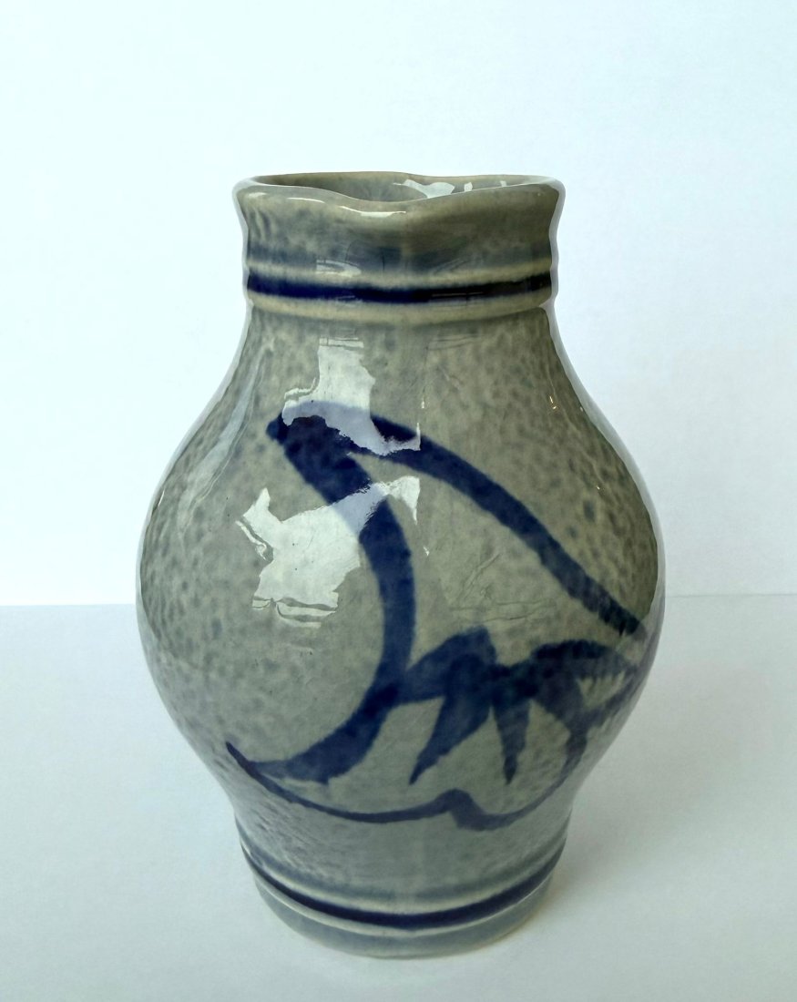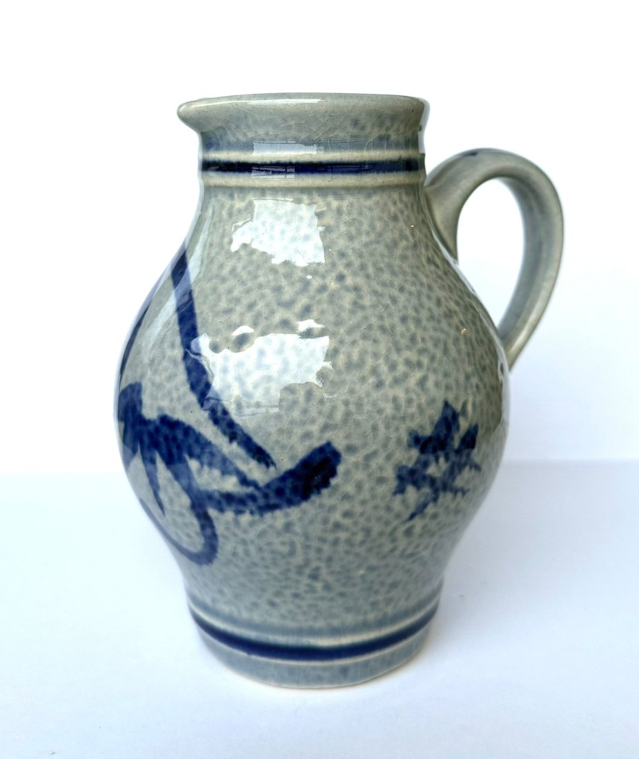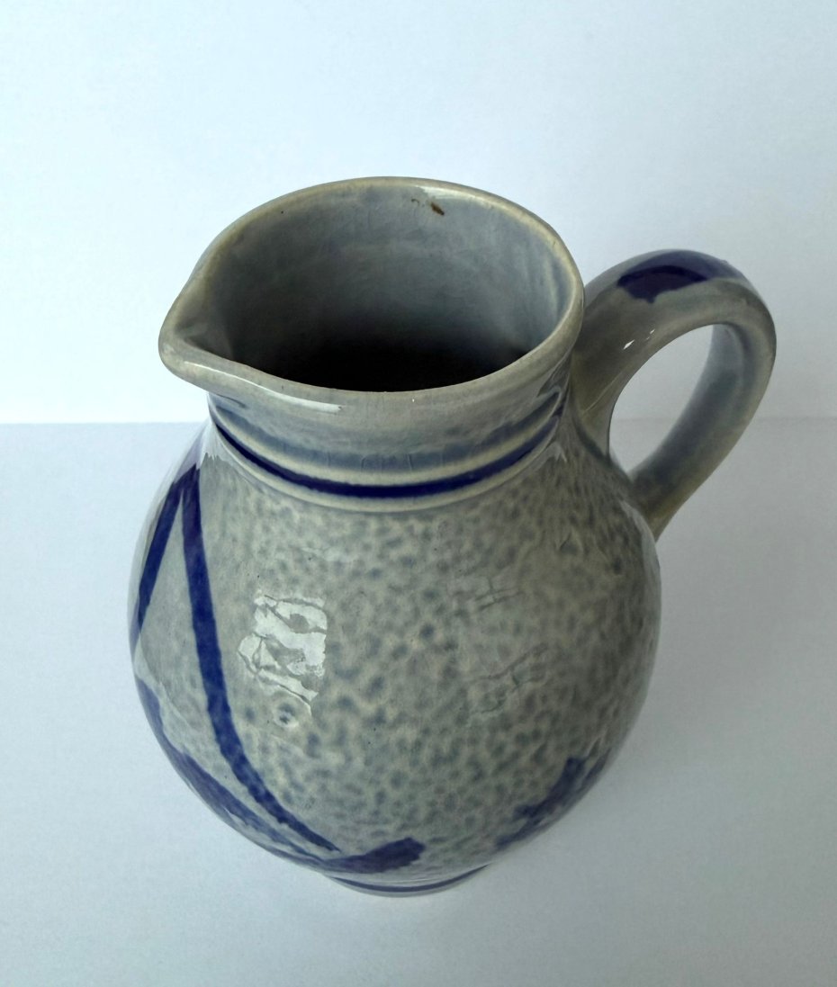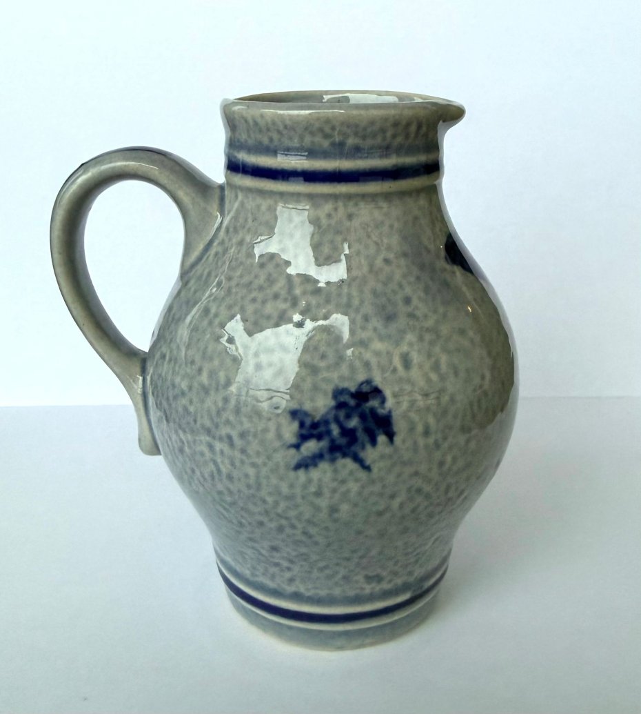 Przedmiot unikatowy ze względu na ręczne zdobienie – mimo braku sygnatury, dzbanek prezentuje wszystkie cechy autentycznej kamionki z Westerwaldu.