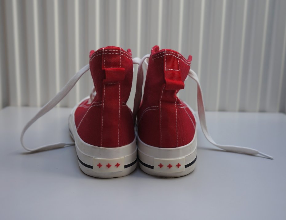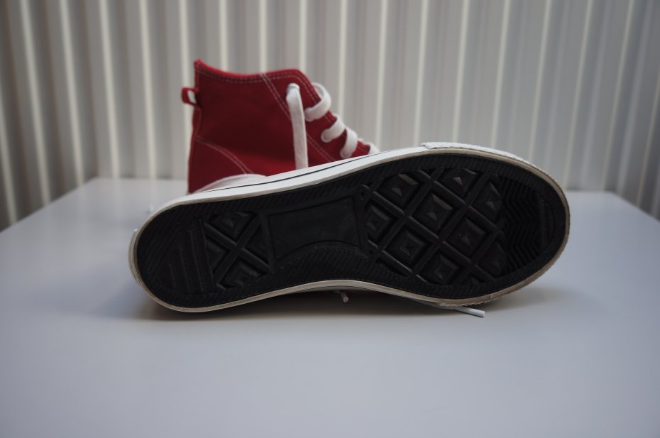 Wysokie, czerwone trampki. Marka Cropp. Cholewka nad kostkę. Wiązanie na płaskie, białe sznurowadła. Idealne na sezon przejściowy. Założone do jednej stylizacji. Stan bardzo dobry.