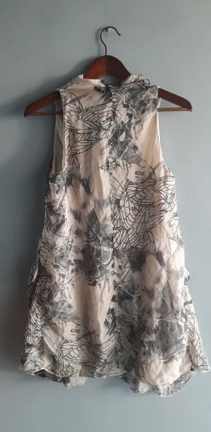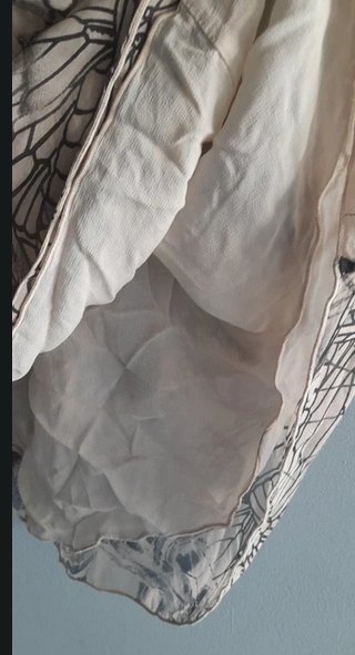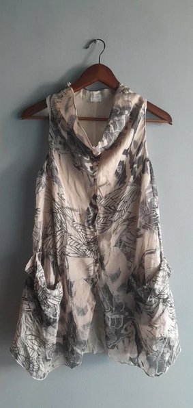 Casualowa ekskluzywna bluzka tunika luksusowej włoskiej marki, jedwab z wiskozą ,beż z czarnym printem, dwuwarstwowa, spód beżowa żorżeta, wierzch cieniutki jedwab z printem, perłowe guziki, jeden zapas, stan idealny, długość 80/68 biust 45x2