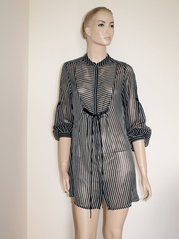 śliczna koszula duńskiej marki Uldahl. Materiał 100% transparentny poliester. rozmiar z metki 38. śliczny kobiecy fason, guziki chowane pod plisą. stan bardzo dobry-( może być kilka małch zaciągnięcie, ale jest to raczej niewidoczne). Podaję wymiary mierzone na płasko;
