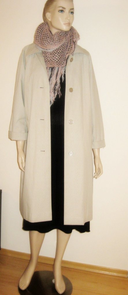 Piękny, szwedzki trencz vintage . Kolor jasny szary w drobny wzorek. Brak metki ze składem, prawdopodobnie bawełna z domieszką. Fason prosty pudełkowy, dodatkowo pasek . Kieszenie do wewnątrz, rękaw raglanowy, niżej wszyty. Stan bardzo dobry. Wydaje mi się, że był skracany. Rozmiar z metki 38. Na 40-42 też będzie pasował. Podaję wymiary mierzone na płasko;