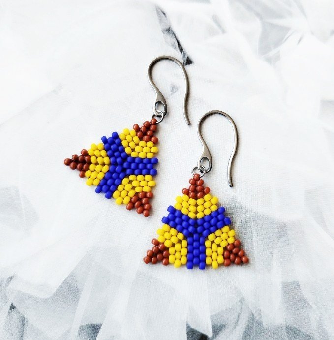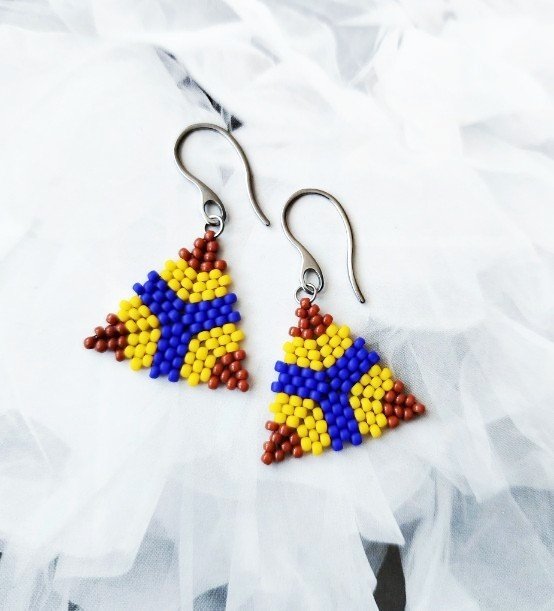 Efektowne kolczyki utkane ręcznie pracochłonną metodą beadingu ze szklanych japońskich koralików TOHO .