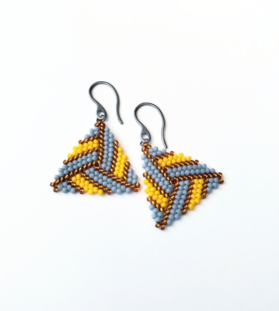 Efektowne kolczyki utkane ręcznie pracochłonną metodą beadingu ze szklanych japońskich koralików TOHO .