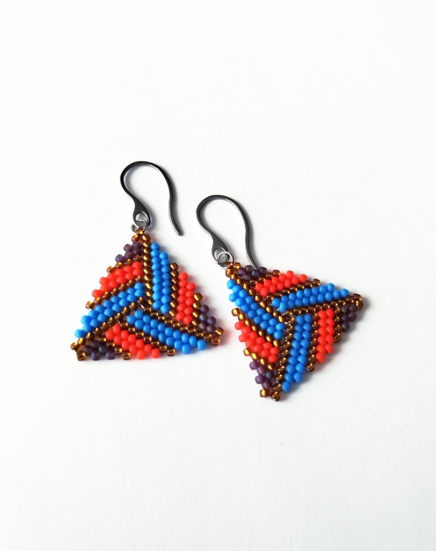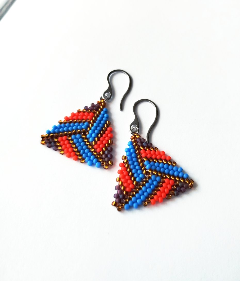 Efektowne kolczyki utkane ręcznie pracochłonną metodą beadingu ze szklanych japońskich koralików TOHO .
