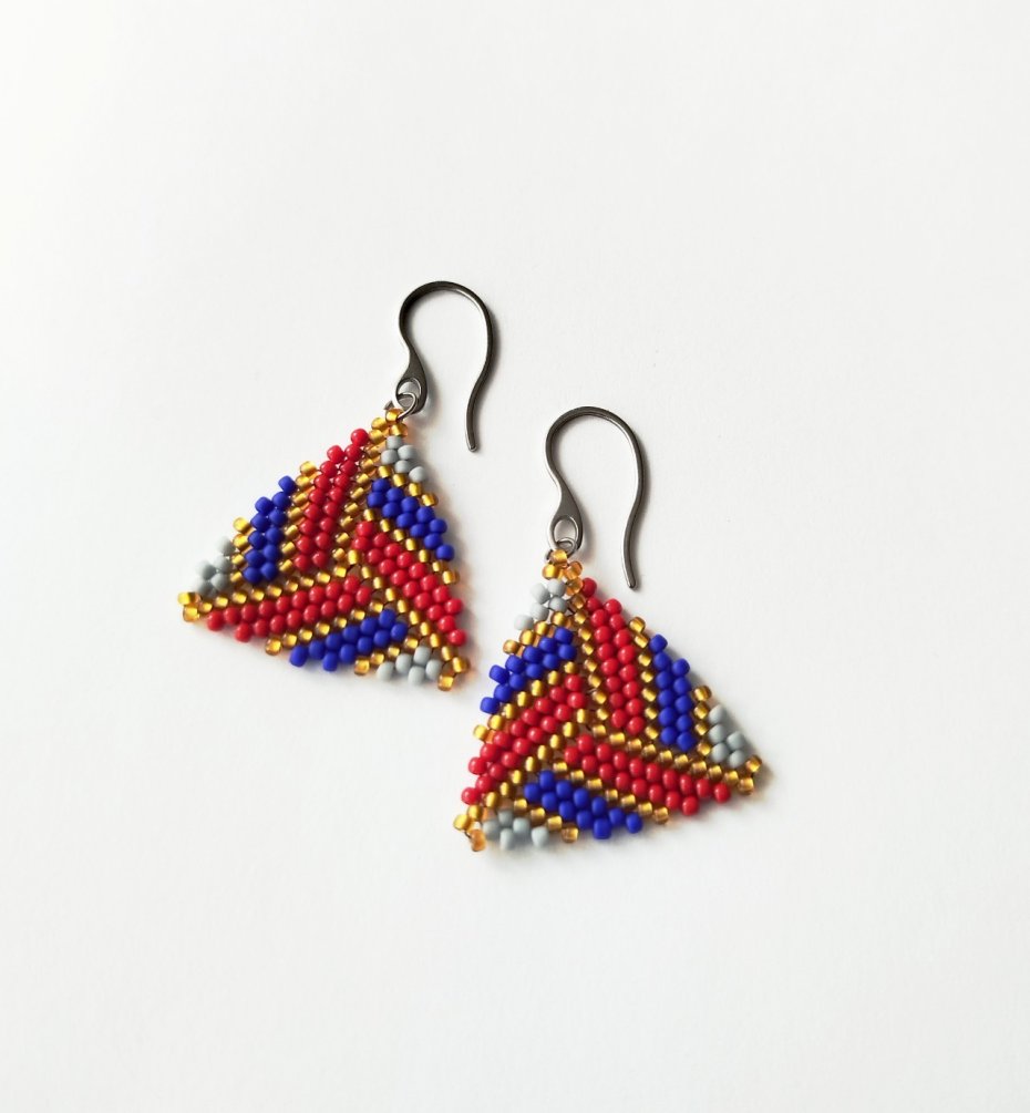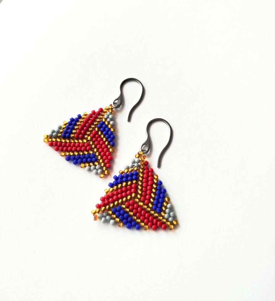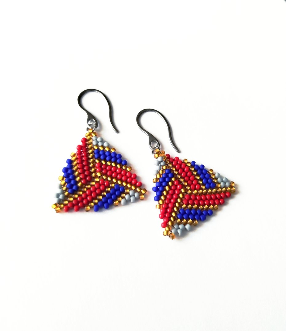 Efektowne kolczyki utkane ręcznie pracochłonną metodą beadingu ze szklanych japońskich koralików TOHO .