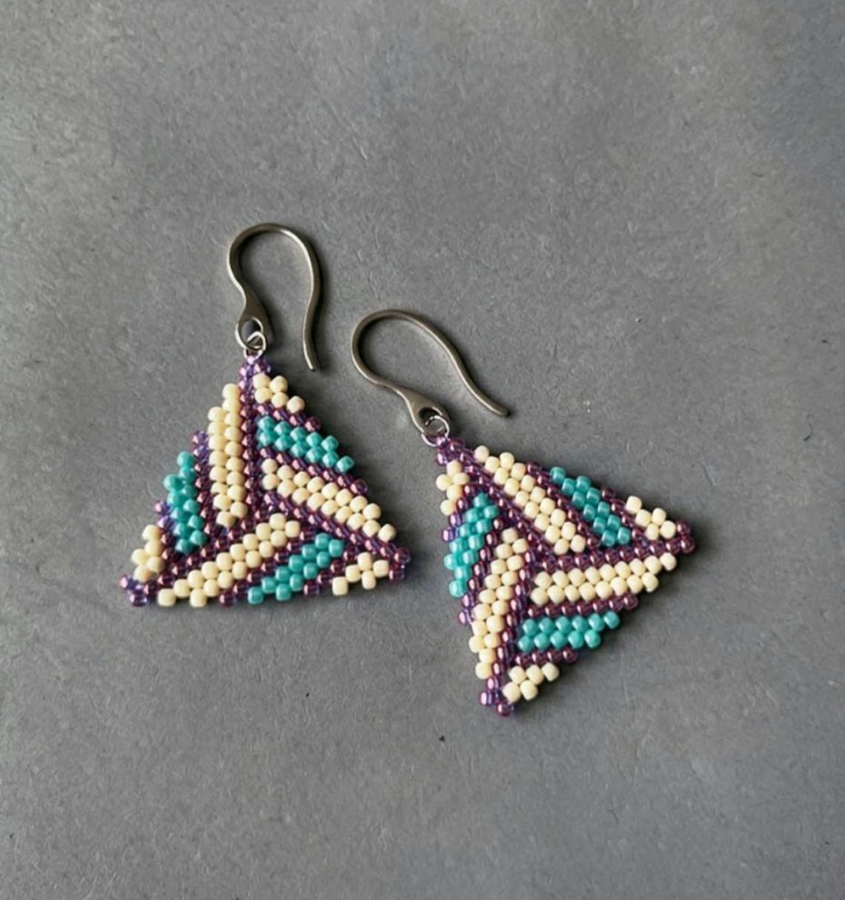 Efektowne kolczyki utkane ręcznie pracochłonną metodą beadingu ze szklanych japońskich koralików TOHO .