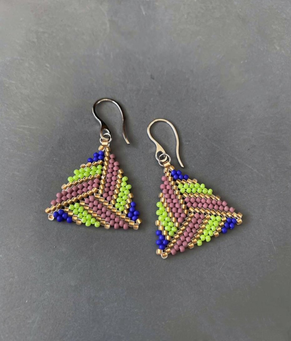 Efektowne kolczyki utkane ręcznie pracochłonną metodą beadingu ze szklanych japońskich koralików TOHO .